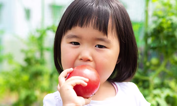 トマトは離乳食初期(5~6ヵ月)から与えることができます。完熟トマトを加熱してから与えましょう。